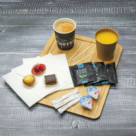 Toujours accompagnée de dosettes de lait, serviettes, sucres, gobelets…